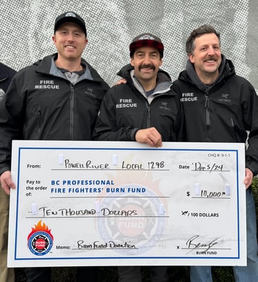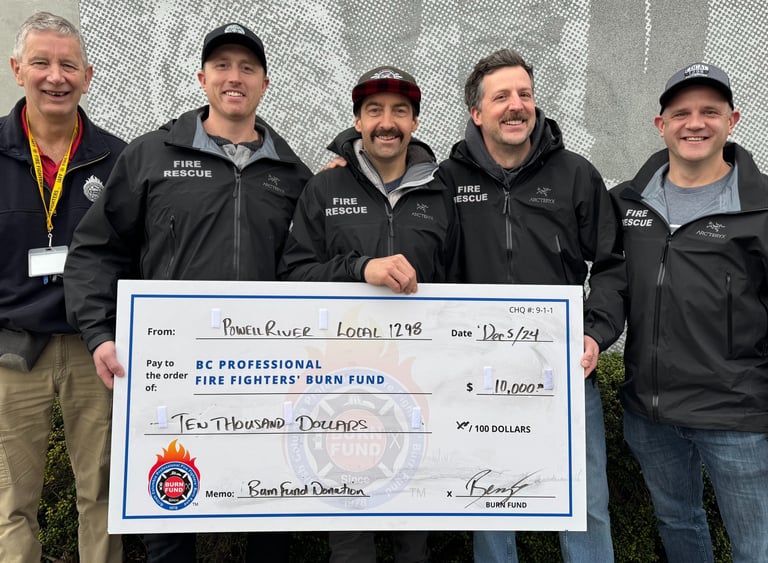 By supporting the Burn Fund, the Powell River Firefighters Charity contributes to these vital programs, ensuring that burn survivors receive the care, resources, and community support they need. Our collaboration reflects a shared commitment to enhancing the lives of those affected by burn injuries and to promoting safety and prevention within our community.